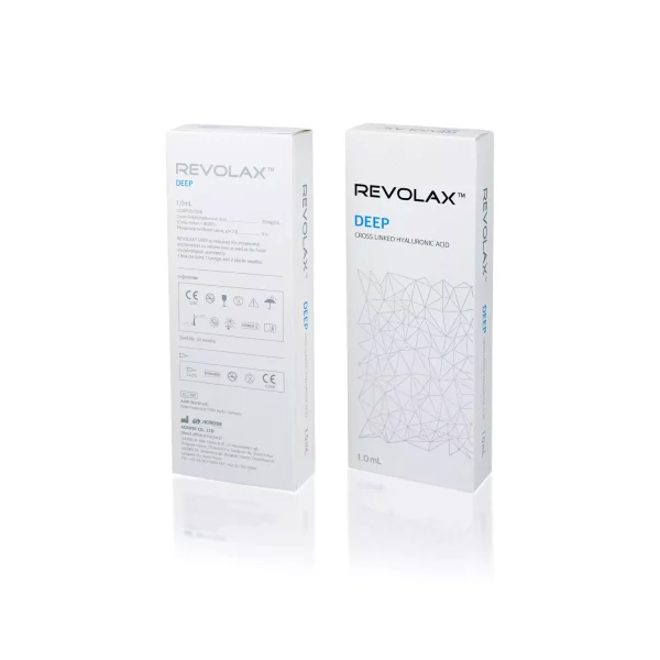 REREVOLAX DEEP with Lidocaine is a sophisticated dermal filler crafted from cross-linked hyaluronic acid, which is known for its excellent biocompatibility and durability. This filler is specifically formulated for deep dermal applications, making it ideal for volumizing and contouring areas such as the cheeks and jawline. The inclusion of lidocaine provides added comfort by minimizing pain during the injection process. REVOLAX DEEP is used by professionals to achieve natural-looking results with minimal downtime, offering a reliable solution for aesthetic enhancements.