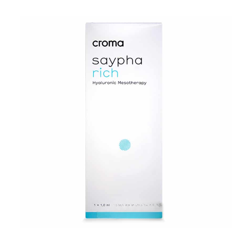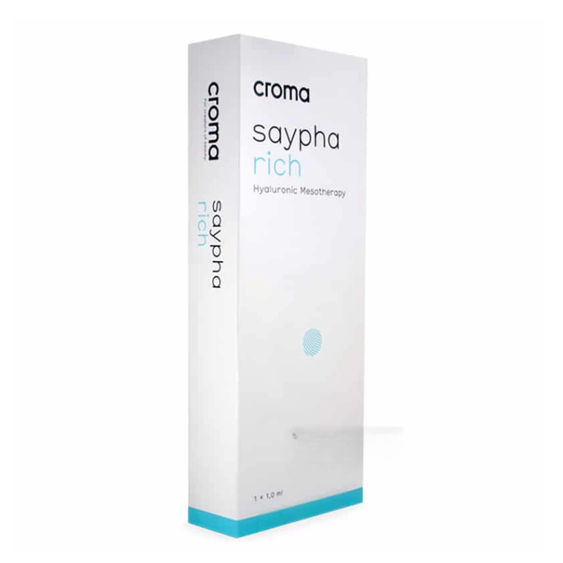SAYPHA RICH by Croma-Pharma is a mesotherapy treatment formulated to deliver intensive hydration and promote natural skin revitalization. It combines 18 mg/ml of pure, non-cross-linked hyaluronic acid with 20 mg/ml of glycerol, enhancing the skin’s moisture retention capabilities while supporting its structural integrity. This unique formula is ideal for patients seeking a fresher, more radiant complexion and improved skin elasticity. Suitable for multiple areas, SAYPHA RICH rejuvenates the skin by restoring its natural hydration balance, making it look more supple and youthful.